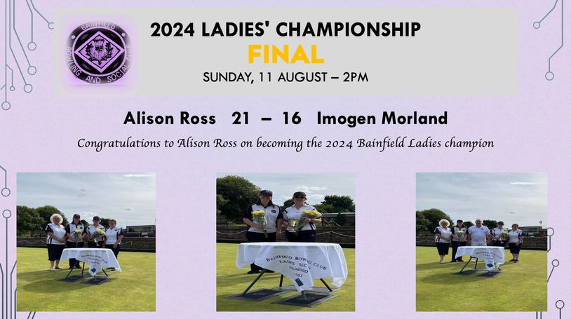 Your 2025 Championship Winner is Alison Ward who beat last years winner Alison Ross in the final .